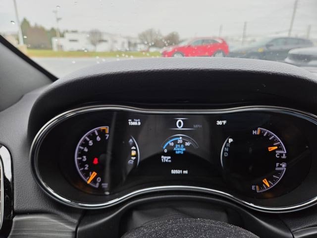 Inside, the cabin is adorned with premium materials and thoughtful details, including the Tungsten interior accent stitching and the Piano Black/Anodized Gunmetal accents. The Uconnect 4C Nav system with an 8.4-inch display provides seamless connectivity, navigation, and entertainment, keeping you connected and informed on every journey.