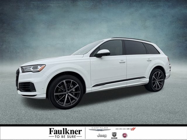 Recent Arrival! Glacier White Metallic This Q7 55 Premium Plus is nicely equipped with 10 Speakers, 3.204 Axle Ratio, 3rd row seats: bench, 4-Wheel Disc Brakes, ABS brakes, Air Conditioning, Alloy wheels, AM/FM radio: SiriusXM, Audi smartphone interface (Apple CarPlay/Android Auto), Auto High-beam Headlights, Auto-dimming door mirrors, Auto-dimming Rear-View mirror, Automatic temperature control, Brake assist, Bumpers: body-color, Compass, Delay-off headlights, Driver door bin, Driver vanity mirror, Dual front impact airbags, Dual front side impact airbags, Electronic Stability Control, Emergency communication system: Audi connect CARE, PRIME & PLUS, Exterior Parking Camera Rear, Four wheel independent suspension, Front anti-roll bar, Front Bucket Seats, Front Center Armrest, Front dual zone A/C, Front fog lights, Front reading lights, Fully automatic headlights, Garage door transmitter: HomeLink, Genuine wood door panel insert, Heated door mirrors, Heated Front Bucket Seats, Heated front seats, Illuminated entry, Leather Seating Surfaces, Leather Shift Knob, Leather steering wheel, Low tire pressure warning, Memory seat, Navigation system: Audi MMI Navigation plus with Touch Response, Occupant sensing airbag, Outside temperature display, Overhead airbag, Overhead console, Panic alarm, Passenger door bin, Passenger vanity mirror, Power door mirrors, Power driver seat, Power Liftgate, Power moonroof: Panoramic, Power passenger seat, Power steering, Power windows, Radio data system, Radio: Audi Sound System, Rain sensing wipers, Rear air conditioning, Rear anti-roll bar, Rear fog lights, Rear reading lights, Rear seat center armrest, Rear side impact airbag, Rear window defroster, Rear window wiper, Reclining 3rd row seat, Remote keyless entry, Roof rack: rails only, Security system, Speed control, Speed-sensing steering, Split folding rear seat, Spoiler, Steering wheel memory, Steering wheel mounted audio controls, Tachometer, Telescoping steering wheel, Tilt steering wheel, Traction control, Trip computer, Turn signal indicator mirrors, Variably intermittent wipers, and Wheels: 19" 5-Arm-Star Design.